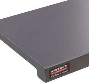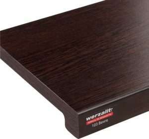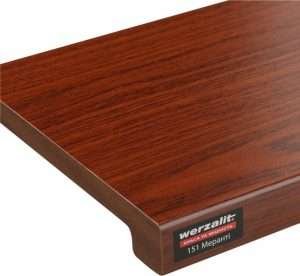 Tai vokiškos aukščiausios kokybės vidaus langų palangės, gaminamos iš specialios MDP (medžio drožlių plokštės) medžiagos naudojant unikalią patentuotą technologiją: drožlės presuojamos aukštoje temperatūroje (virš 160 °C) ir slėgyje su dervomis, užtikrinant monolitinę struktūrą ir didelį tankį. Jos išsiskiria išskirtiniu atsparumu drėgmei (brinkimas tik 2 % prie 100 % drėgmės), temperatūros svyravimams (nuo -50 iki +90 °C), UV spinduliams ir mechaniniams pažeidimams, taip pat lengvu priežiūra – nereikalauja specialių priemonių, bet rekomenduojama naudoti apsaugines medžiagas nuo pilkėjimo. Prieinamos įvairios formos (pvz., klasikinė Exclusive su 34 mm briauna ar minimalistinė Compact be snapelio), spalvos (balta, antracitas, medžio imitacijos) ir matmenys (ilgis iki 6000 mm, plotis nuo 100 mm), montavimas paprastas. Gamintojas suteikia 15 metų garantiją, idealios tiek gyvenamiesiems, tiek komerciniams interjerams dėl estetikos ir ilgaamžiškumo.