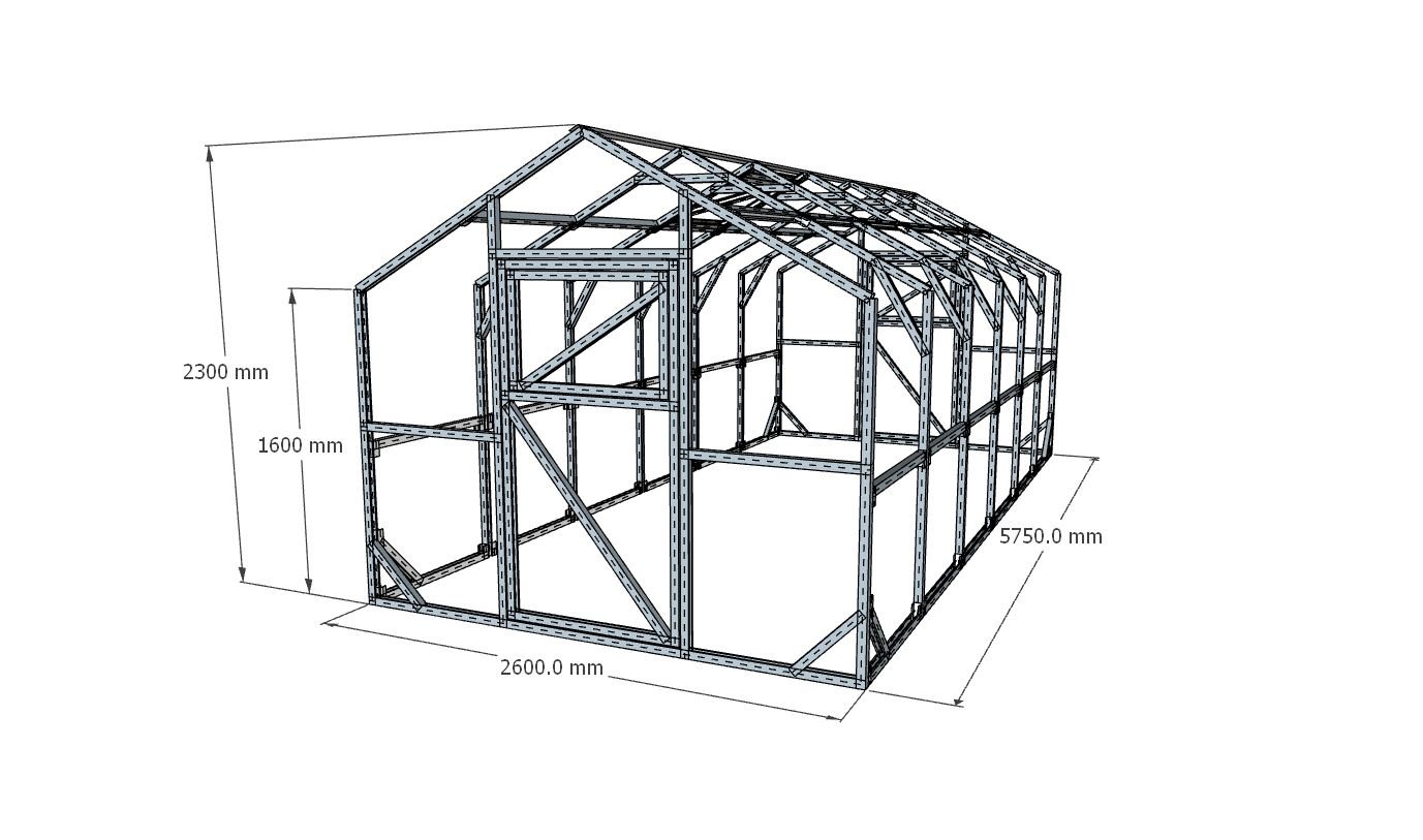 Šis 2,6 metrų pločio ir 5,75 metrų ilgio dvišlaitis šiltnamis priklauso nestandartinių šiltnamių kategorijai. Jis sukurtas sodininkams, kuriems reikalingi specifiniai matmenys, maksimalus konstrukcijos tvirtumas ir optimalus erdvės išnaudojimas. Dėl stačių šoninių sienų augalai turi daugiau vietos stiebtis į viršų, o jūs galite mėgautis patogiu darbu visame šiltnamio plote.