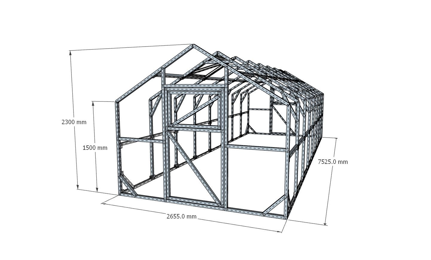 Šis įspūdingo dydžio, 2,66 metrų pločio ir net 7,53 metrų ilgio dvišlaitis šiltnamis priklauso nestandartinių šiltnamių kategorijai. Jis sukurtas sodininkams, kuriems reikia didelio auginimo ploto, maksimalaus konstrukcijos stabilumo ir ilgaamžiškumo. Dėl klasikinės namuko formos ir stačių sienų, augalams suteikiama kur kas daugiau vietos augti į viršų, o jūs galite maksimaliai išnaudoti visą šiltnamio tūrį.