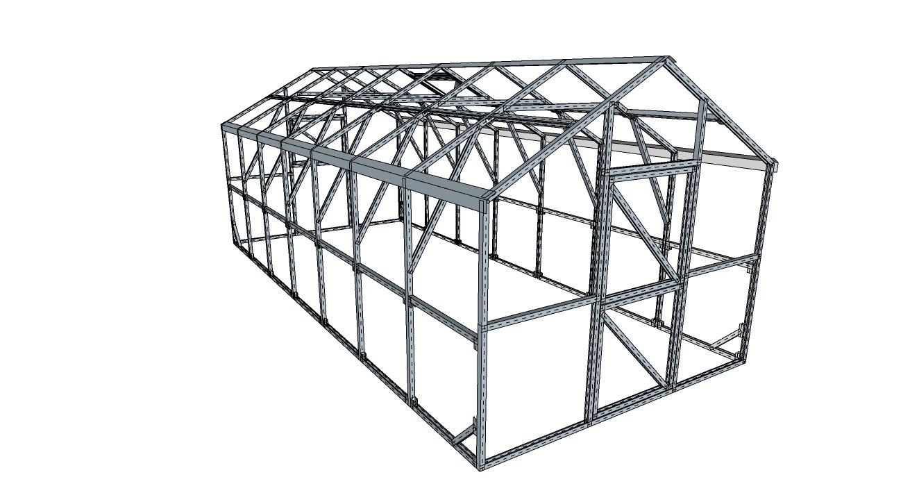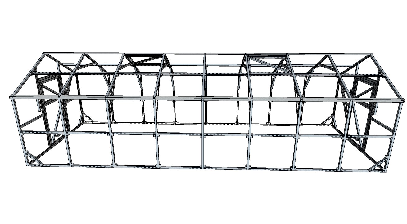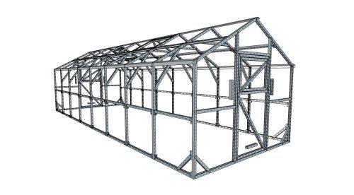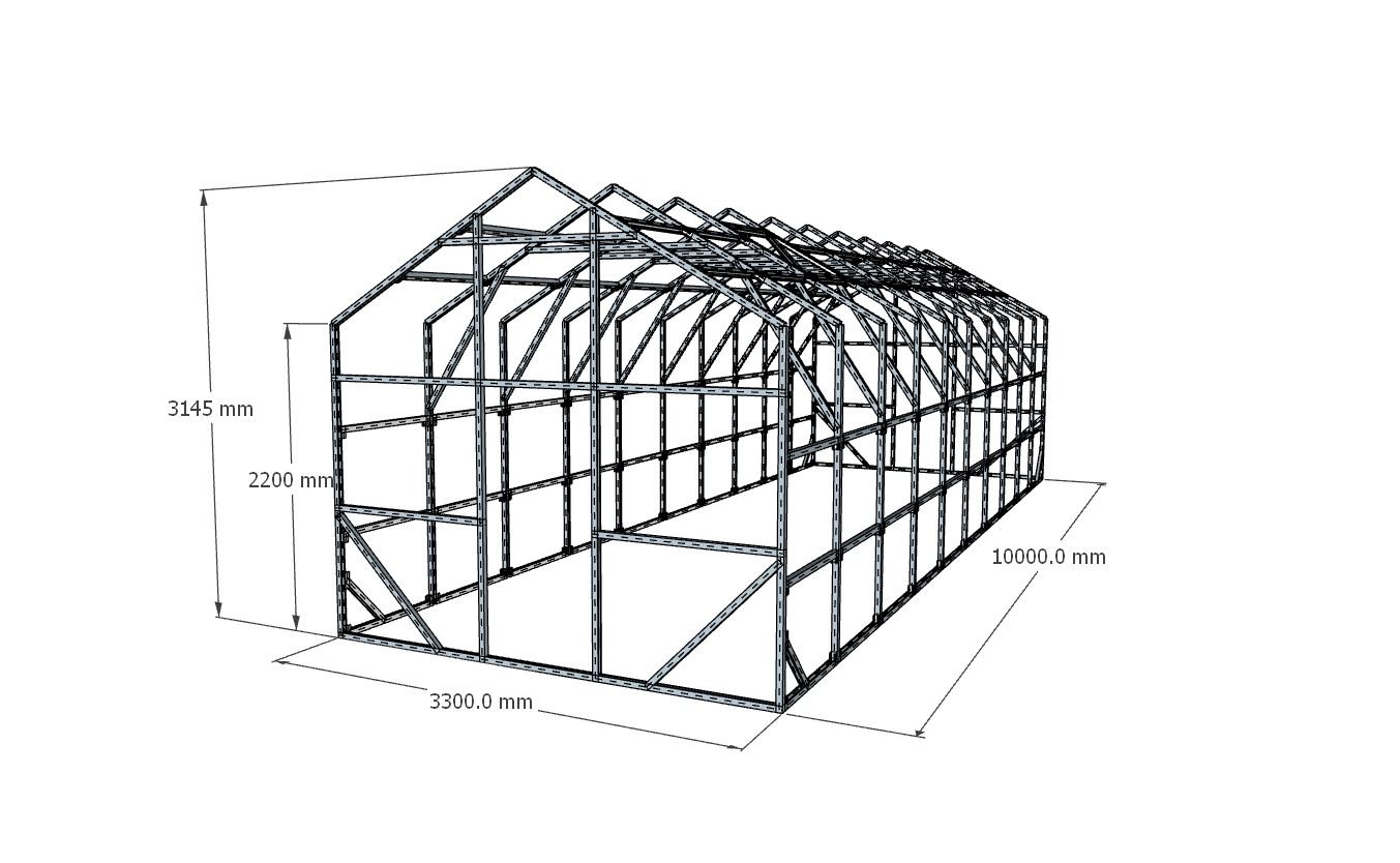 Šiltnamio karkasas gaminamas Latvijoje, naudojant sustiprintas medžiagas, pritaikytas tokioms didelėms ir aukštoms konstrukcijoms: