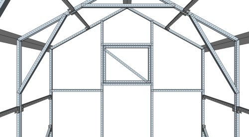 Pirkdami šį modelį, gaunate pilną pramoninio lygio rinkinį: sustiprinto cinkuoto plieno karkasą, polikarbonato lakštus (jei pasirenkama su danga), visą reikiamą tvirtinimo furnitūrą bei išsamią montavimo instrukciją.