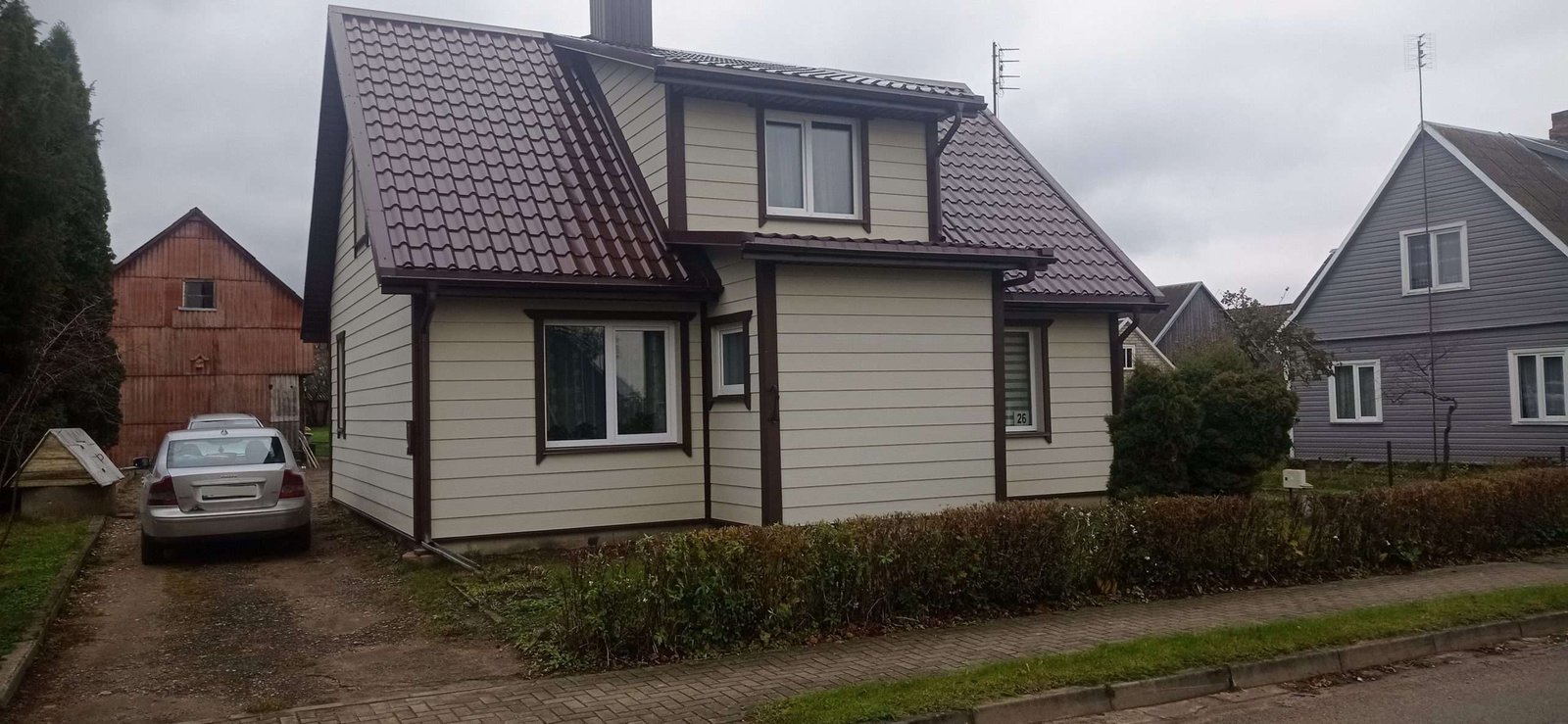 Siūlome Jūsų dėmesiui porą to paties namo nuotraukų. Namas apkaltas PRIMAplank lentutėmis 2010 metais, tad viena nuotrauka ir daryta 2011 metais, na, o kita foto daryta 2022 metais. Kad šias dvi nuotraukas skira nemažas laiko tarpas – išduoda nuotraukose matomi užaugę medžiai. Kitu atveju, skirtumo nepamatytume, nes kliento 2011 metais dažytos dailylentės tiek tada, tiek 2022 metais atrodo taip pat gražiai ir visiškai nepakitusios.