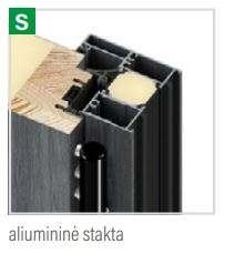 • Stakta: Medinė (klijuoto tašo), 100 x 60 mm, su „šiltu“ aliuminio ir PVC slenksčiu.