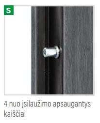 • Saugumas: Vyrių pusėje apsauga nuo nukėlimo, Keturi apsauginiai kaiščiai, RC2 (atspari įsilaužimams).