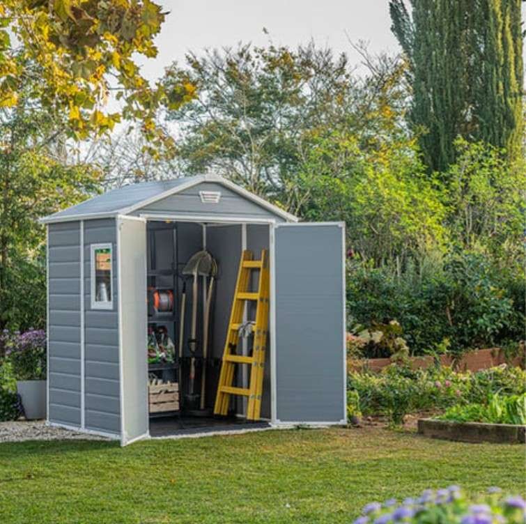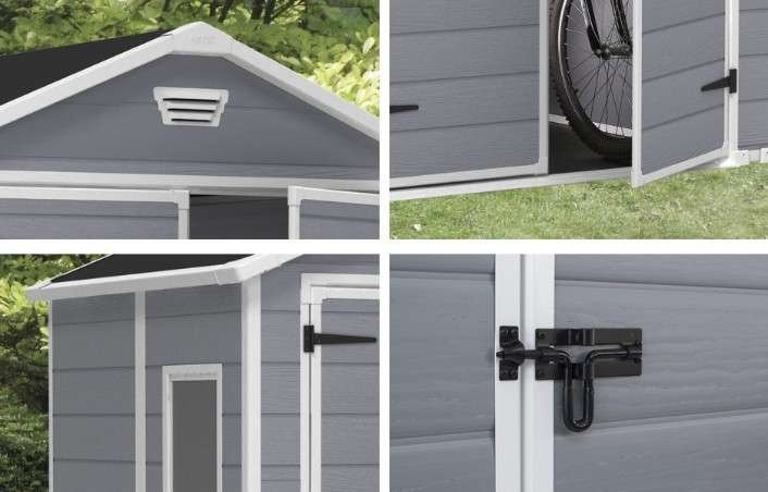 Lauko sandėliukas MANOR 6×8 DD – erdvus, tvirtas ir stilingas plastikinis sodo namelis, puikiai tinkantis įrankiams, sodo technikai, dviračiams ar buities daiktams laikyti. Pagamintas iš aukštos kokybės oro sąlygoms atsparaus plastiko, šis namelis nereikalauja dažymo, neblunka ir išlieka puikios būklės daugelį metų. Dėl plačių dvigubų durų patogu įnešti net didesnius daiktus, o įmontuotas stiklinis langas ir ventiliacijos angos užtikrina natūralią šviesą ir oro cirkuliaciją. Tvirta grindų plokštė apsaugo nuo purvo bei drėgmės, o neutralios spalvos dizainas harmoningai dera bet kokio stiliaus kieme ar sodyboje.